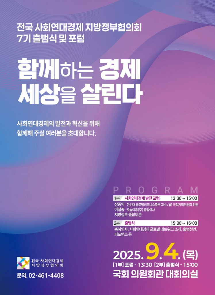 새 정부 출범 이후 지역사회와 국가 발전의 핵심전략으로 사회연대경제가 다시 주목받고 있는 만큼, 한국사회 사회연대경제의 내일을 조망하고, 지역 현장에 실효성 있는 정책적 지원을 논의할 수 있도록 ‘발전 포럼’ 및 협의회 7기 출범식을 개최합니다.