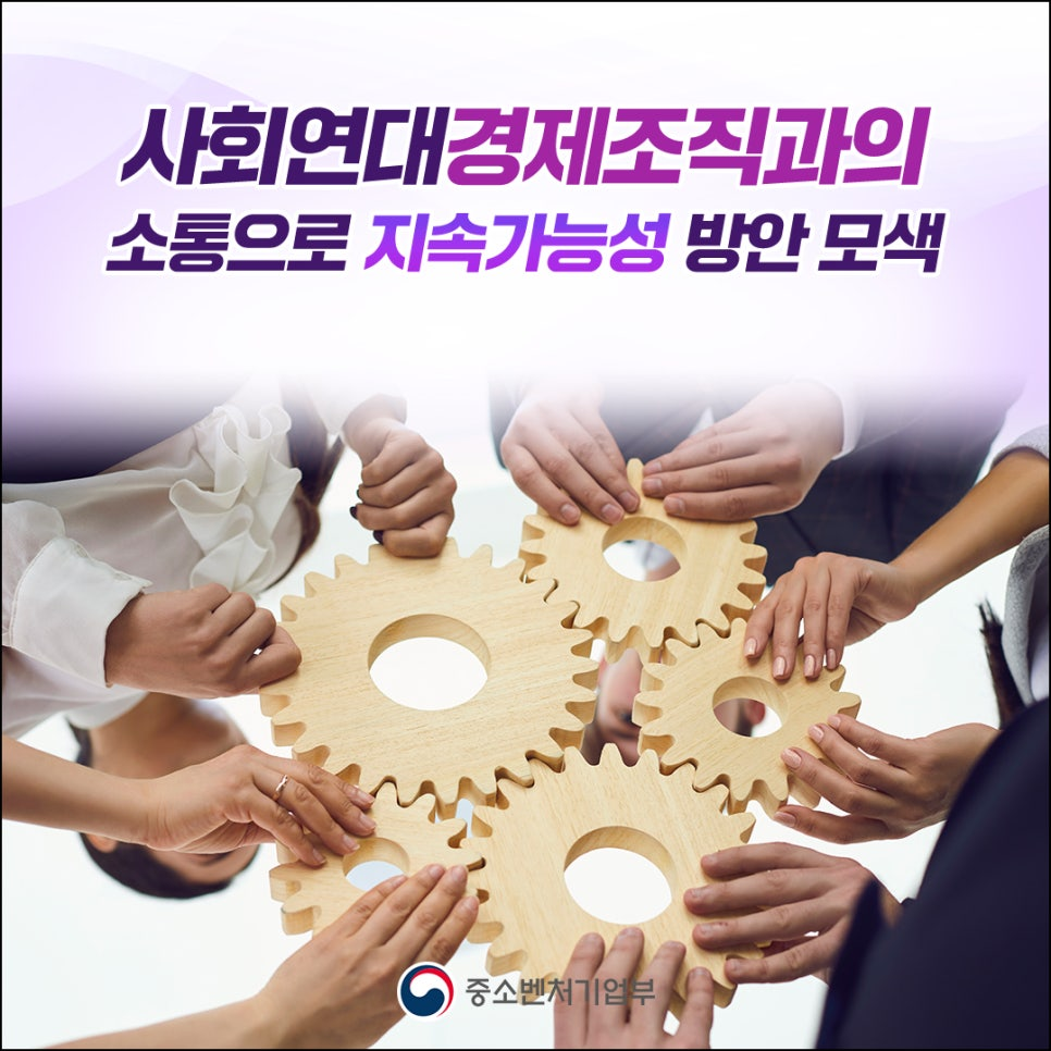중소벤처기업부(장관 한성숙, 이하 중기부)는 9월 23일(화) 기술보증기금 서울지점에서 사회연대경제조직(소상공인 협동조합, 생활협동조합, 소셜벤처, 관련 VC 등)과의 소통을 위한 간담회를 개최하였다고 밝혔습니다.