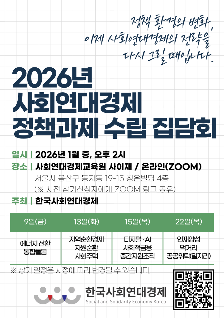 2026년 사회연대경제 정책과제 수립 집담회