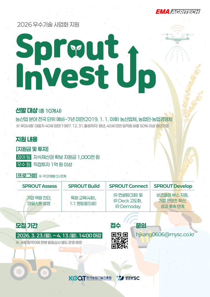 2026 우수기술 사업화 지원 SPROUT Invest Up 참여기업 모집(4.13)
