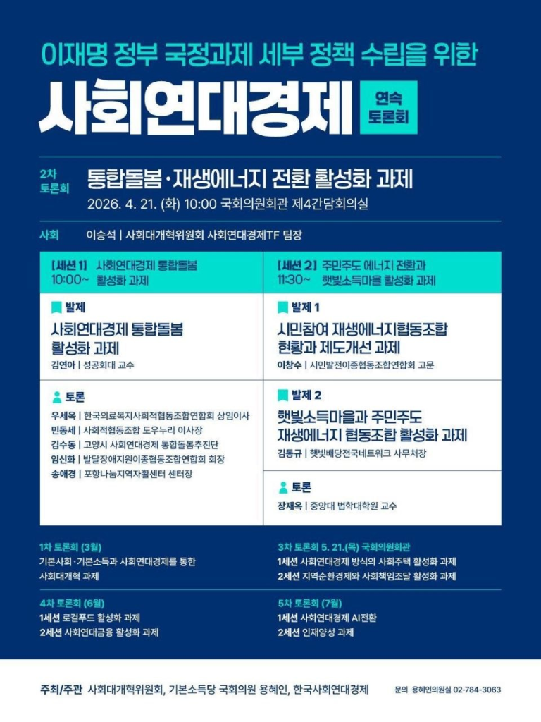 사회연대경제 연속토론회-통합돌봄/재생에너지 전환 활성화 과제(4.21)