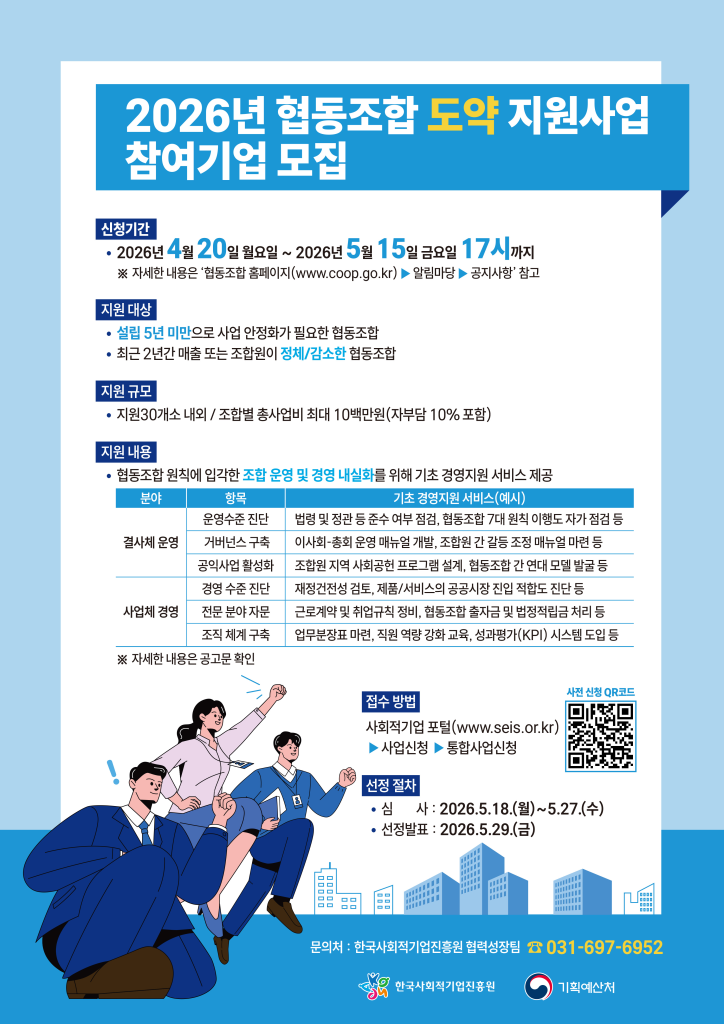 협동조합 도약 지원사업 참여기업 모집(5.15)